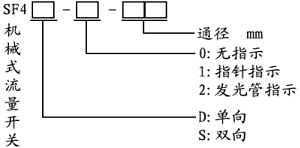 SF4型機(jī)械式流量開關(guān)用于測(cè)量流經(jīng)管道的液體流動(dòng)狀態(tài), 如:水、油、乙稀、乙二醇等對(duì)銅無(wú)腐蝕作用的液體。是一種新型的檢測(cè)裝置,廣泛用于水電站供水系統(tǒng)斷水保護(hù)。采用日本歐姆龍微動(dòng)開關(guān),動(dòng)作輕巧。 二、型號(hào)說(shuō)明